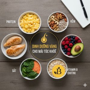 - 🥑 Bổ sung Dinh Dưỡng “Vàng”: Ăn các thực phẩm giàu Kẽm, Sắt, Vitamin B (đặc biệt là Biotin) và Protein (có trong trứng, thịt nạc, các loại hạt).
